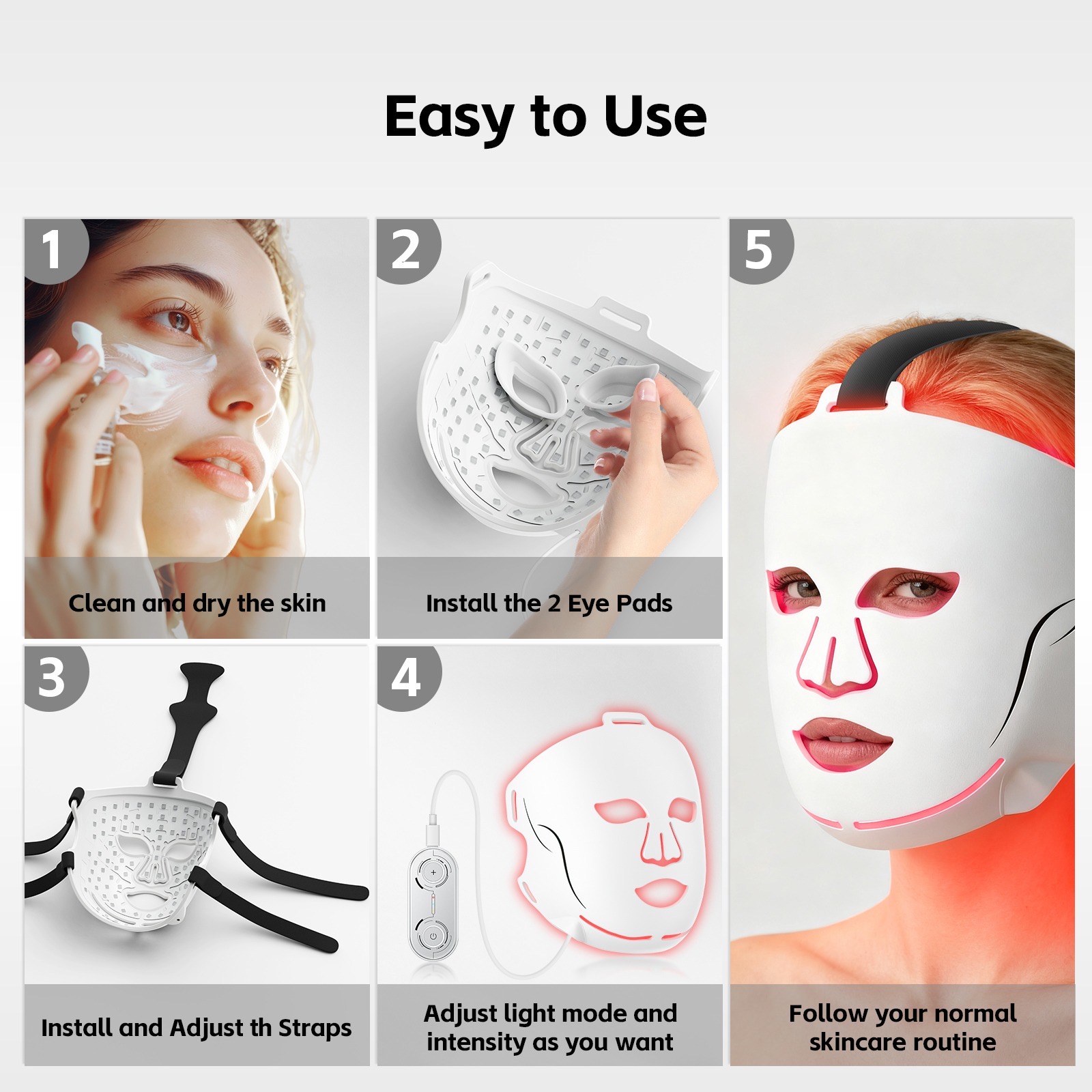 - For best results, use at night and apply a hyaluronic acid serum on clean and damp skin before using LED mask